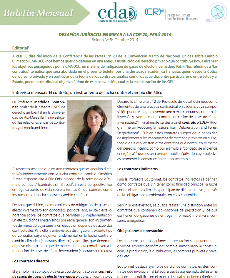 Compartimos el número 8 de nuestro Boletín Desafíos Jurídicos en miras a la COP20, Perú 2014.