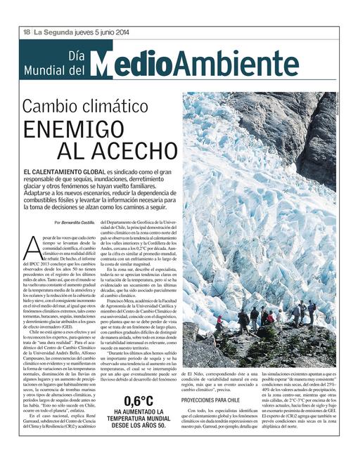 En el caso nacional, explica René Garreaud, subdirector del Centro de Ciencia del Clima y la Resiliencia (CR)2 y académico del Departamento de Geofísica -FCFM- de la Universidad de Chile, la principal demostración del cambio climático en la zona centro-norte del país se observa en la tendencia al calentamiento de los valles interiores y la Cordillera de los Andes, cercana a los 0.2 C por década. Aunque la cifra es similar al promedio mundial, contrasta con un enfriamiento a lo largo de la costa de similar magnitud.