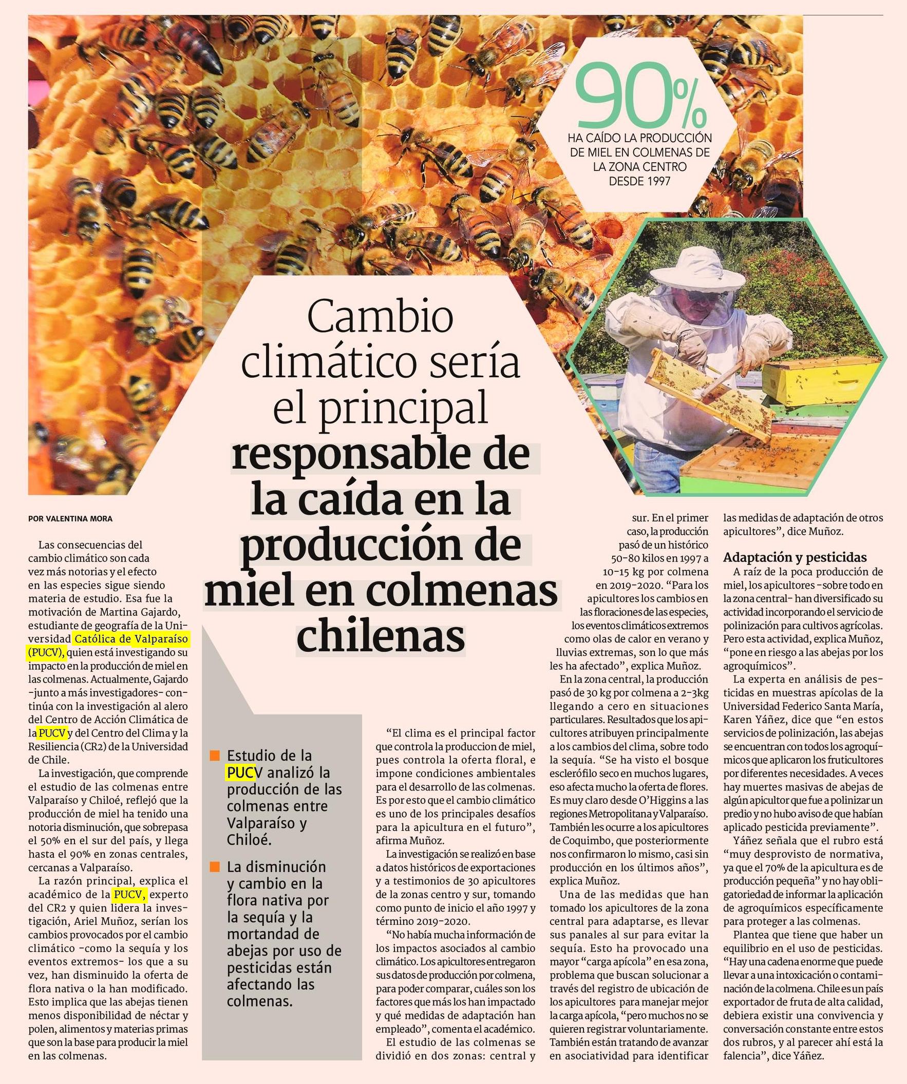 Cambio climático sería el principal responsable de la caída en la producción de miel en colmenas chilenas (Diario Financiero)
