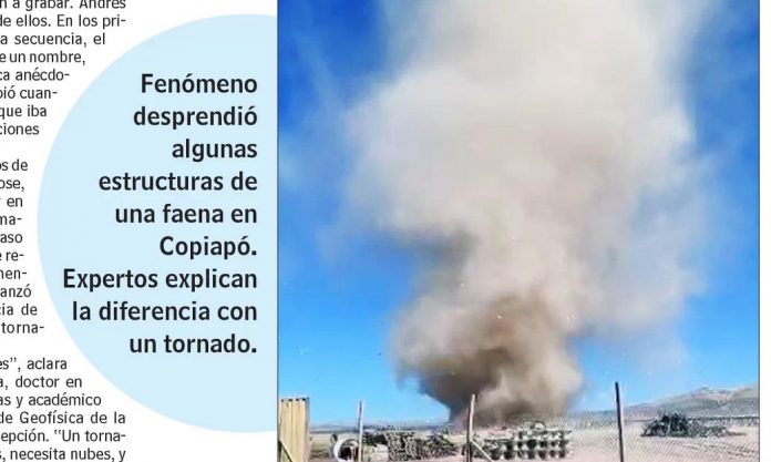 Fenómeno desprendió algunas estructuras de una faena en Copiapó. Expertos explican la diferencia con un tornado.