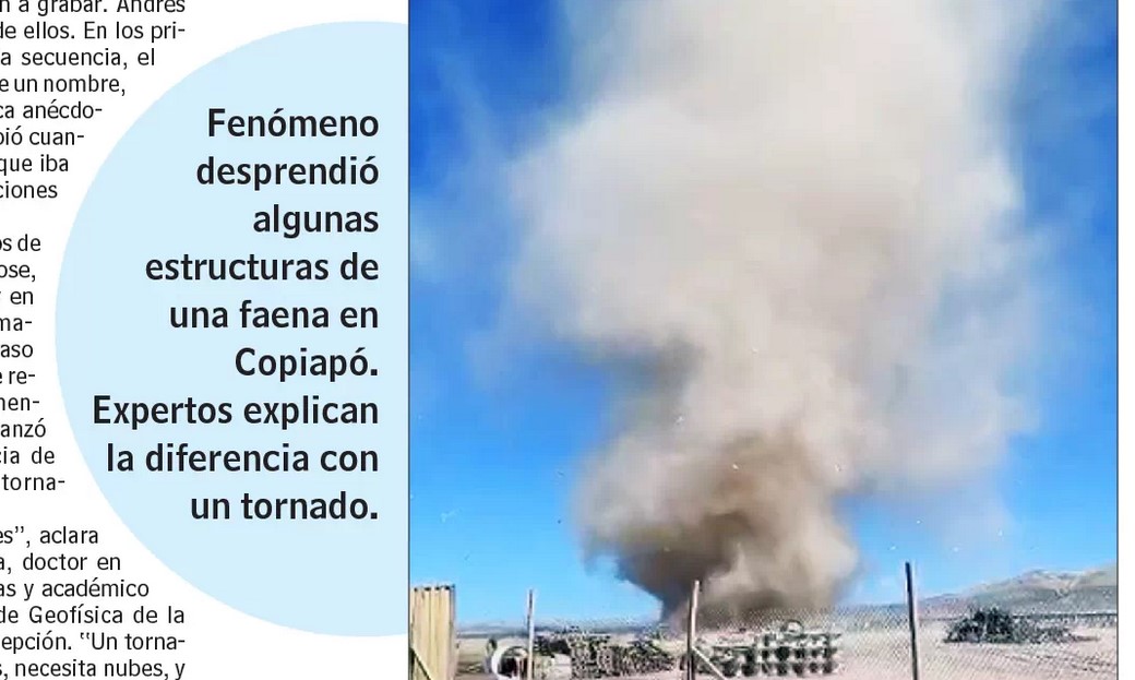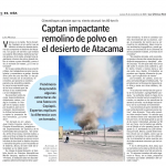 Captan impactante remolino de polvo en el desierto de Atacama (Las Últimas Noticias)