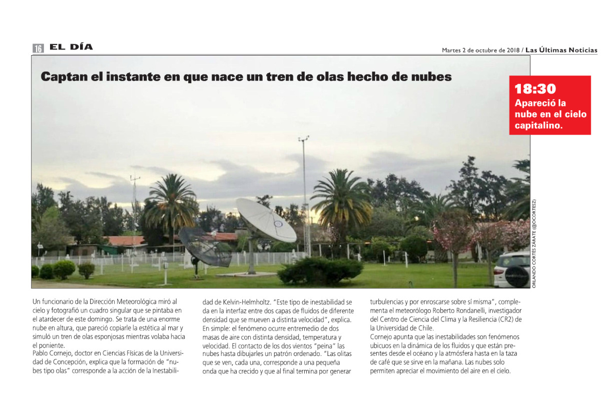 Un funcionario de la Dirección Meteorológica miró al cielo y fotografió un cuadro singular que se pintaba en el atardecer de este domingo. Se trata de una enorme nube de altura que pareció copiarle la estética al mar y simuló un tren de olas esponjosas mientras volaba hacia el poniente.