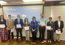 Pilar Moraga, directora del CR2, René Garreaud, subdirector del CR2, y los/as investigadores/as Nicolás Huneeus, Laura Gallardo y Paulina Aldunce, recibieron un diploma en...