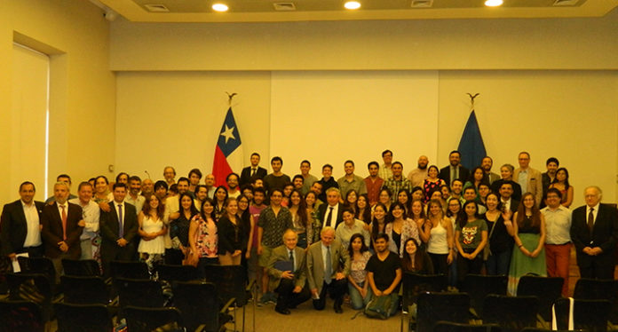 Durante la ceremonia se hizo entrega de un reconocimiento al Profesor Fernando Santibáñez por la creación de la carrera de Ingeniería en Recurso Naturales Renovables de la Facultad de Ciencias Agronómicas de la Universidad de Chile.