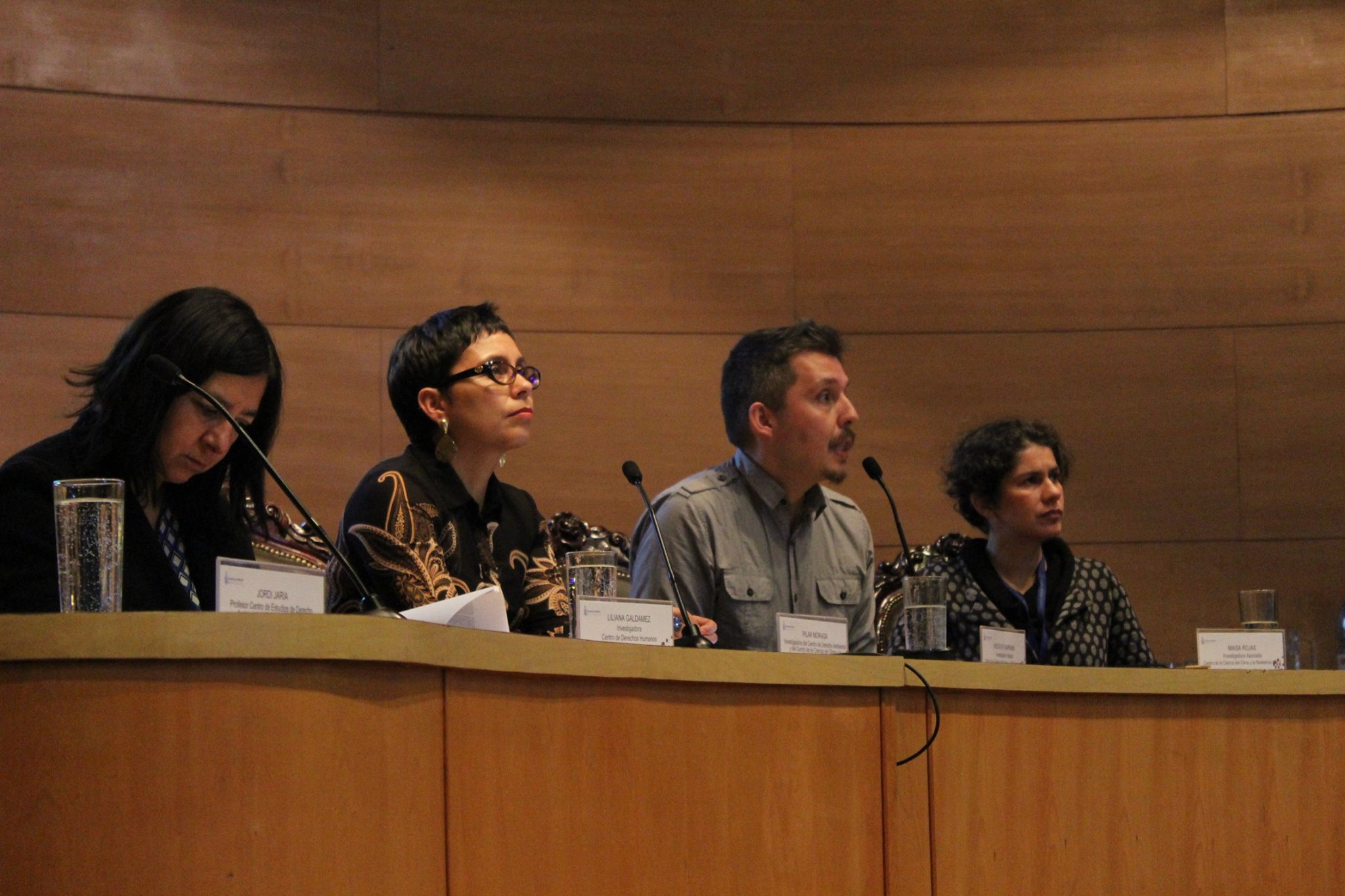 Pilar Moraga, investigadora principal del (CR)2 y académica de la Facultad de Derecho, moderó el panel de debate integrado por Maisa Rojas, directora del Núcleo Milenio Paleoclima; Rodolfo Sapiains, investigador del (CR)2; Jordi Jaria, profesor del Centro de Derecho Ambiental de Tarragona, España (CEDAT); y Liliana Galdámez, investigadora del Centro de Derechos Humanos de la Facultad de Derecho U. de Chile.
