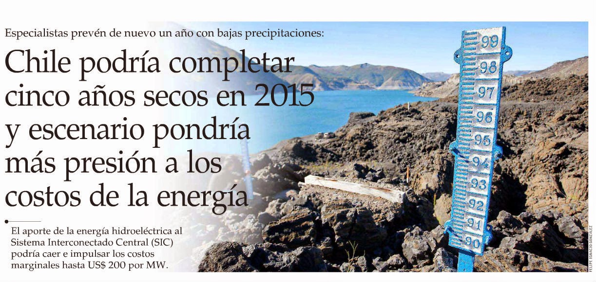 Chile podría completar cinco años secos en 2015 y escenario pondría más presión a los costos de la energía (El Mercurio)