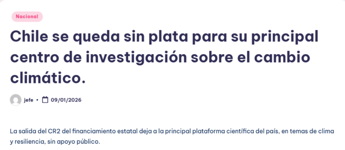 La salida del CR2 del financiamiento estatal deja a la principal plataforma científica del país, en temas de clima y resiliencia, sin apoyo público.