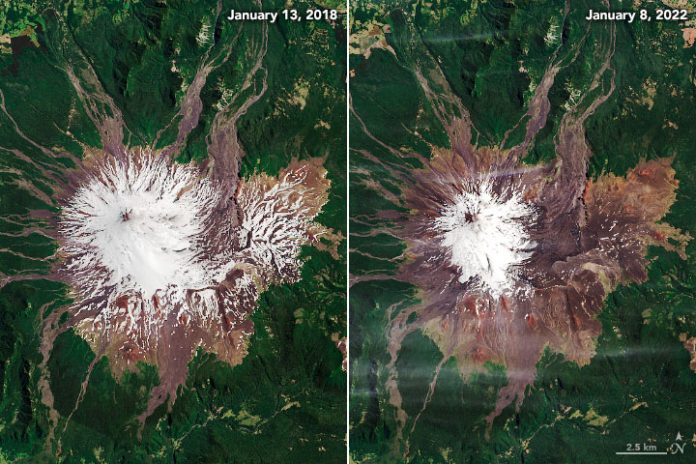 “Many stations near Villarica and to the south recorded their lowest accumulations since 1960,” Garreaud said, referring to the precipitation measured by the Chilean Weather Service between January 1 and December 31, 2021. Warm temperatures in spring and summer can enhance melting, but Garreaud thinks the dry conditions were the main reason for the reduced snow cover.