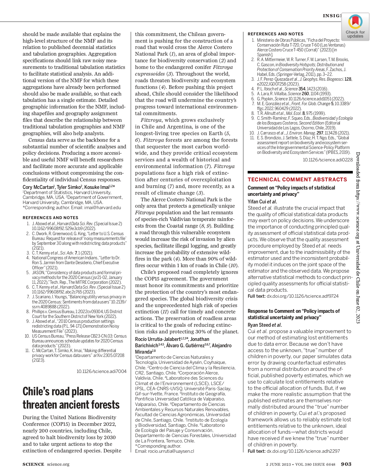 Carta publicada en la revista Science para dar a conocer la amenaza que viven actualmente los bosques de alerce.