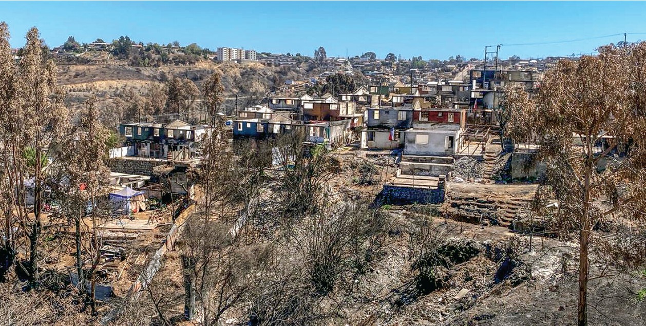 Although naturally occurring wildfires have been infrequent in Chile (1), human-caused ignitions, flammable plantations, and prolonged droughts now make the region one of the most fire-prone areas in the world (2). In February, a record-setting wildfire burned through thousands of hectares of dry, stressed vegetation in the Valparaíso region (3), destroying thousands of homes and leading to 133 human fatalities (4). Chile must take steps to mitigate the disastrous impacts of such wildfires (5).