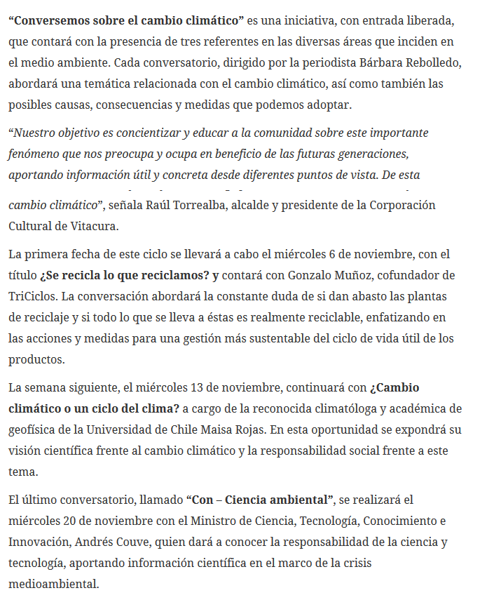 Ciclo de charlas: Conversemos sobre cambio climático en Lo Matta Cultural (El Mostrador)