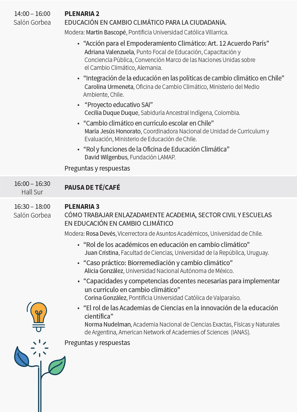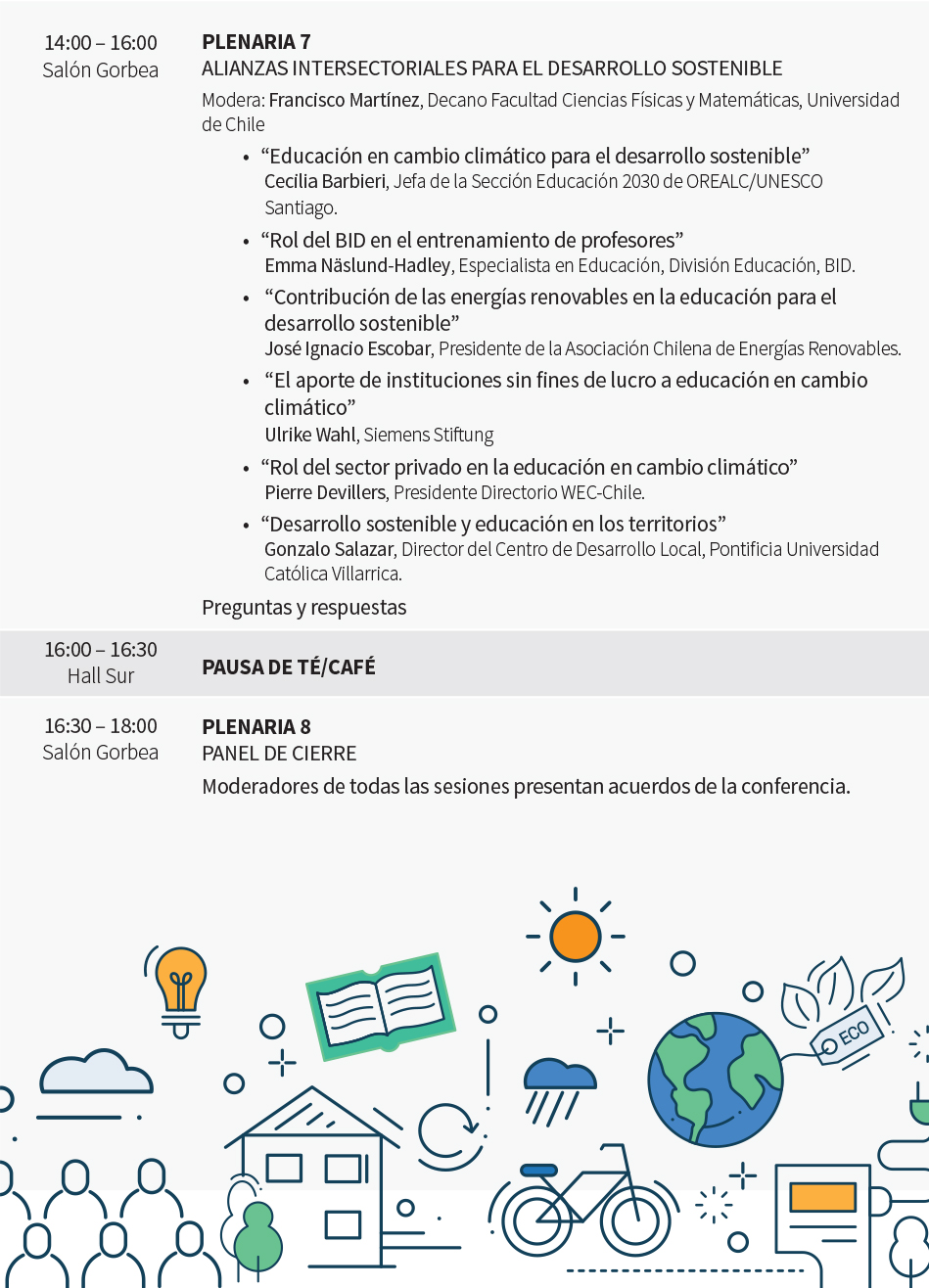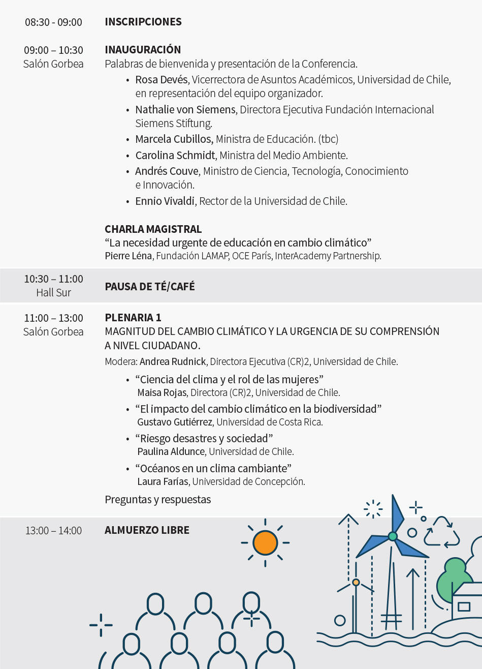 La Conferencia Internacional Educación en Cambio Climático en Chile está vinculada a la iniciativa Office for Climate Education en Francia que busca “organizar una fuerte cooperación operacional internacional científica y educacional en el ámbito de la educación en cambio climático” (www.oce.global). La Conferencia reúne principalmente a participantes de nuestra región de América del Sur para compartir visiones y experiencias en educación en cambio climático en los niveles de educación primaria y secundaria, con el fin de generar redes y fortalecer un futuro trabajo formativo para una ciudadanía activa en el cuidado y protección del medio ambiente.