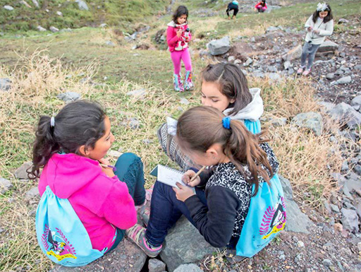 Las primeras en recibir el kit Julieta Exploradora fueron 40 niñas de la Escuela El Manzano, de San José de Maipo, que lo utilizaron para explorar su entorno en compañía de cuatro científicas del proyecto.