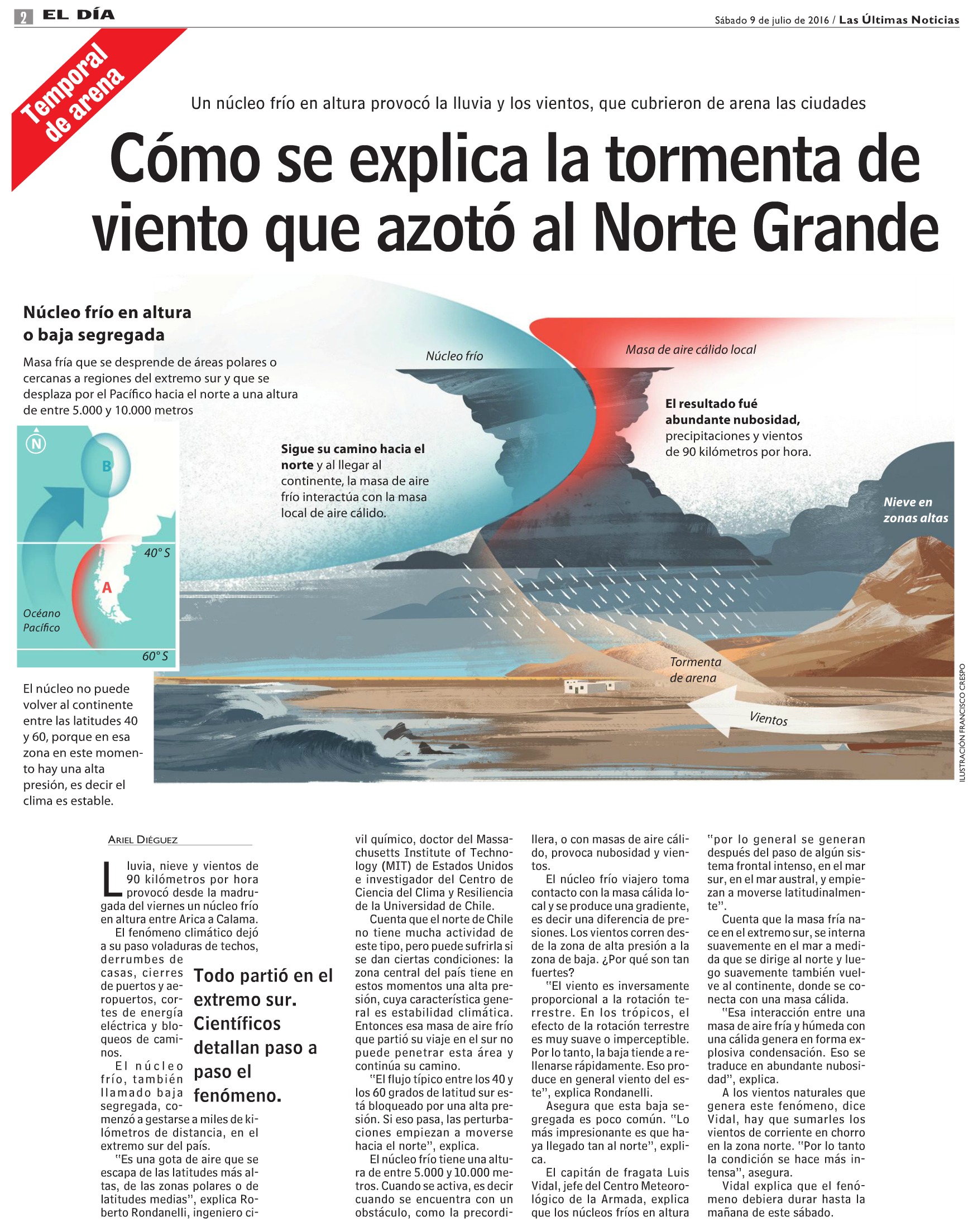 Zona costera Cómo se explica la tormenta de viento que azotó al norte grande (Las Últimas Noticias) 9 de julio de 2016 2989 Todo partió en el extremo sur. Científicos detallan paso a paso el fenómeno. Por Ariel Diéguez Leer en Las Últimas Noticias