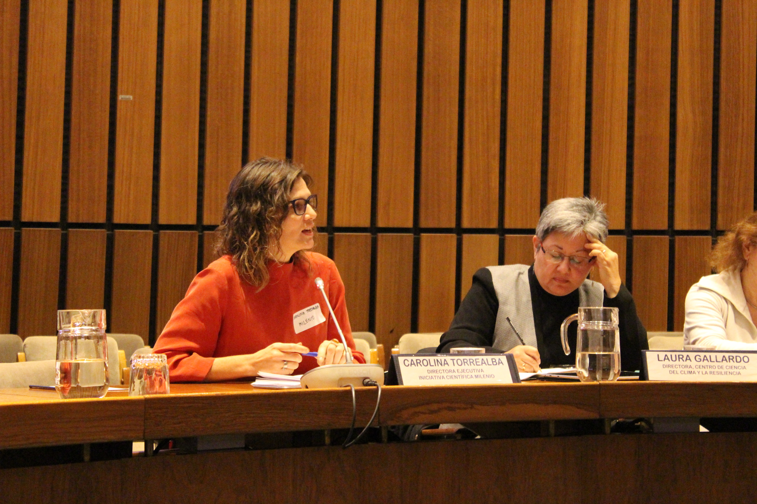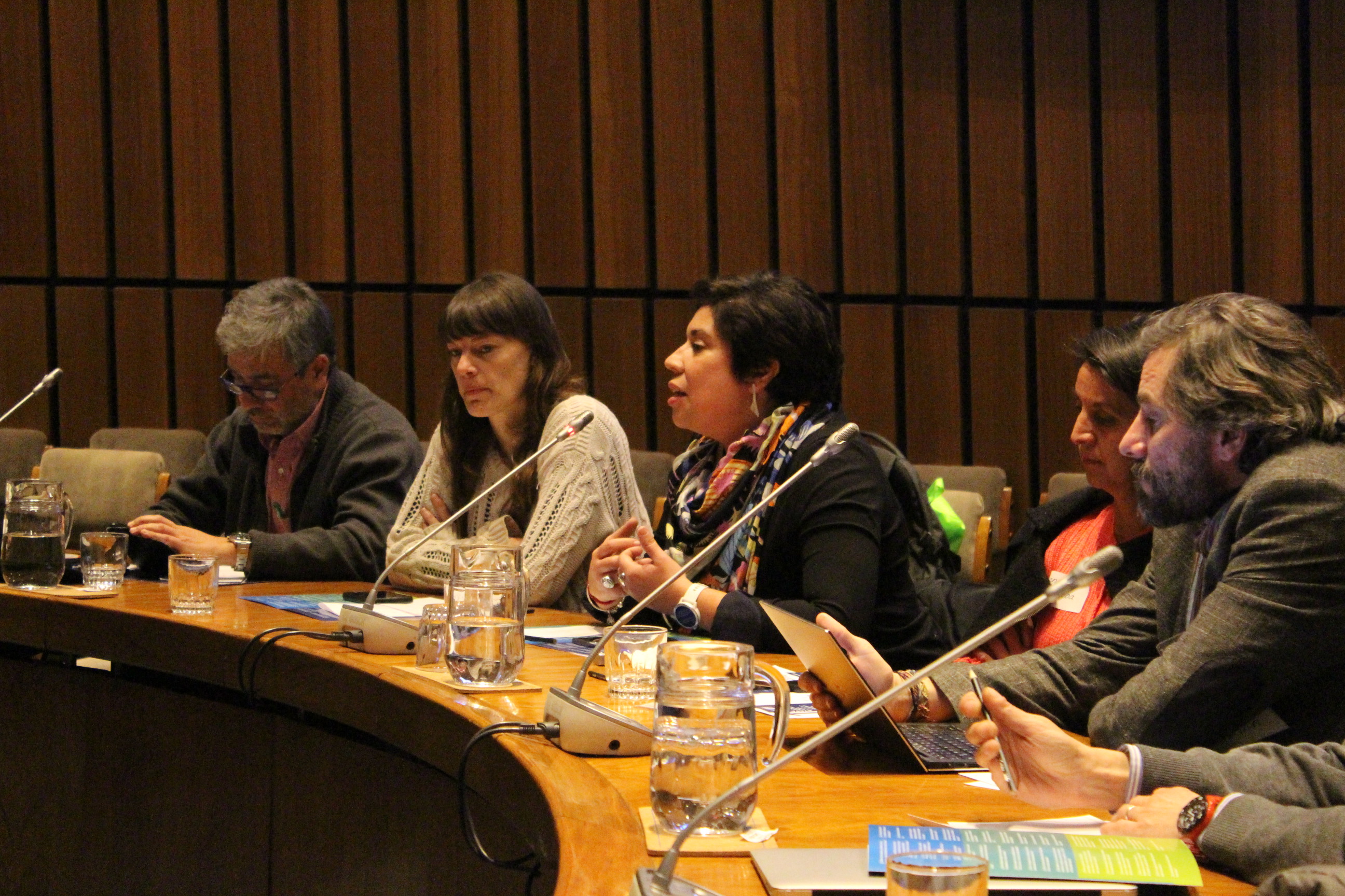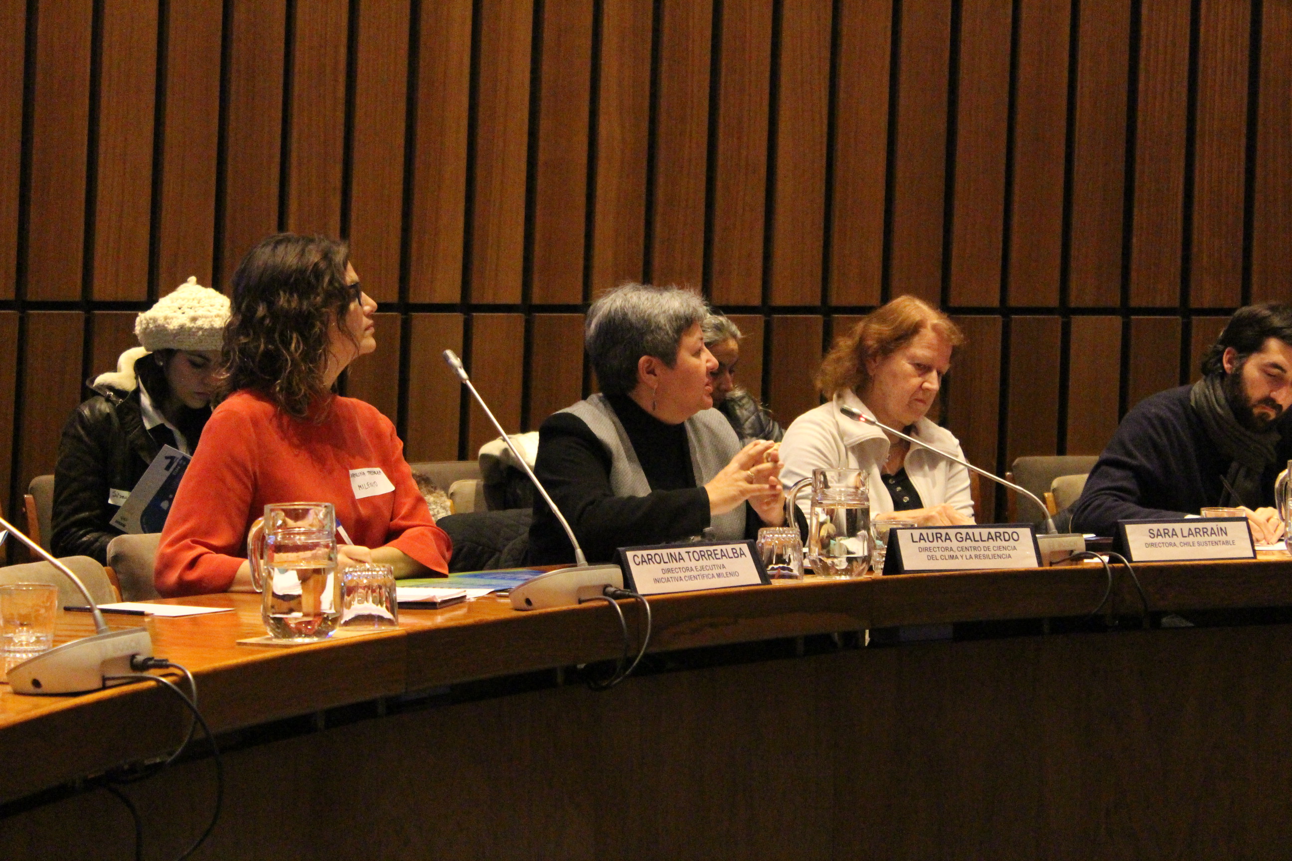 Quienes conformaron el panel en esta oportunidad fueron Rafael Palacios, director de políticas públicas de la SOFOFA, Isabel Meneses, directora del Programa de Investigación Asociativa de CONICYT, Sara Larraín, directora de Chile Sustentable, Juan José Donoso, jefe de la División de Recursos Naturales y Biodiversidad del Ministerio de Medio Ambiente, Guido Girardi, presidente de la Comisión Desafíos del Futuro, Ciencia, Tecnología e Innovación de la cámara del Senado y Laura Gallardo, directora del Centro de Ciencia del Clima y la Resiliencia (CR)2.
