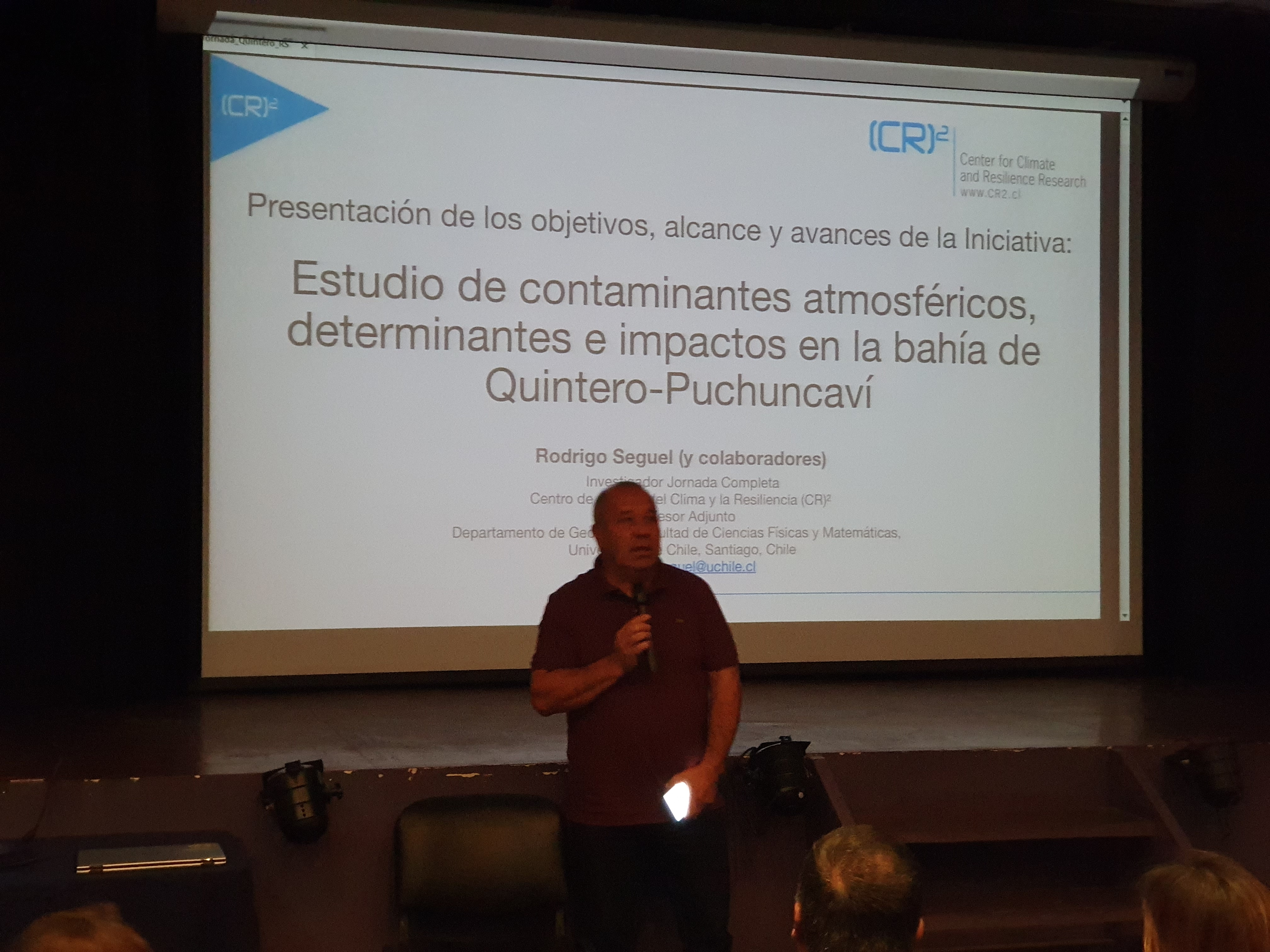 Con la participación de vecinos y vecinas, organizaciones de la sociedad civil, autoridades comunales y ministeriales, directivos de escuelas y liceos, estudiantes, y representantes de las empresas de la zona, el Centro de Ciencia del Clima y la Resiliencia (CR)2 compartió los resultados preliminares del proyecto «Estudio de contaminantes atmosféricos, determinantes e impactos en la bahía de Quintero-Puchuncaví», iniciativa apoyada por la Municipalidad de Quintero y la Facultad de Ciencias Físicas y Matemáticas de la Universidad de Chile.