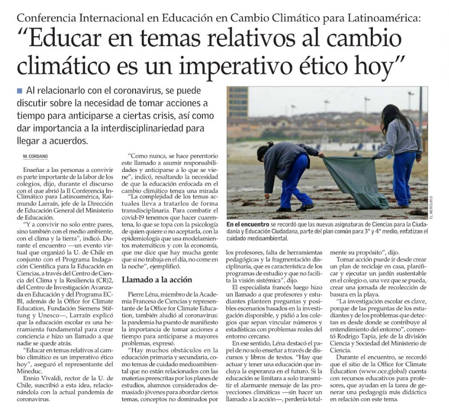 Enseñar a las personas a convivir es parte importande de la alabor de los colegios, dijo durante el discurso con el que abrió la II Conferencia Internacional en Educación en Cambio Climático para Latinoamerica, Raimundo Larraín, jefe de la Dirección de Educación General del Ministerio de Educación.