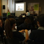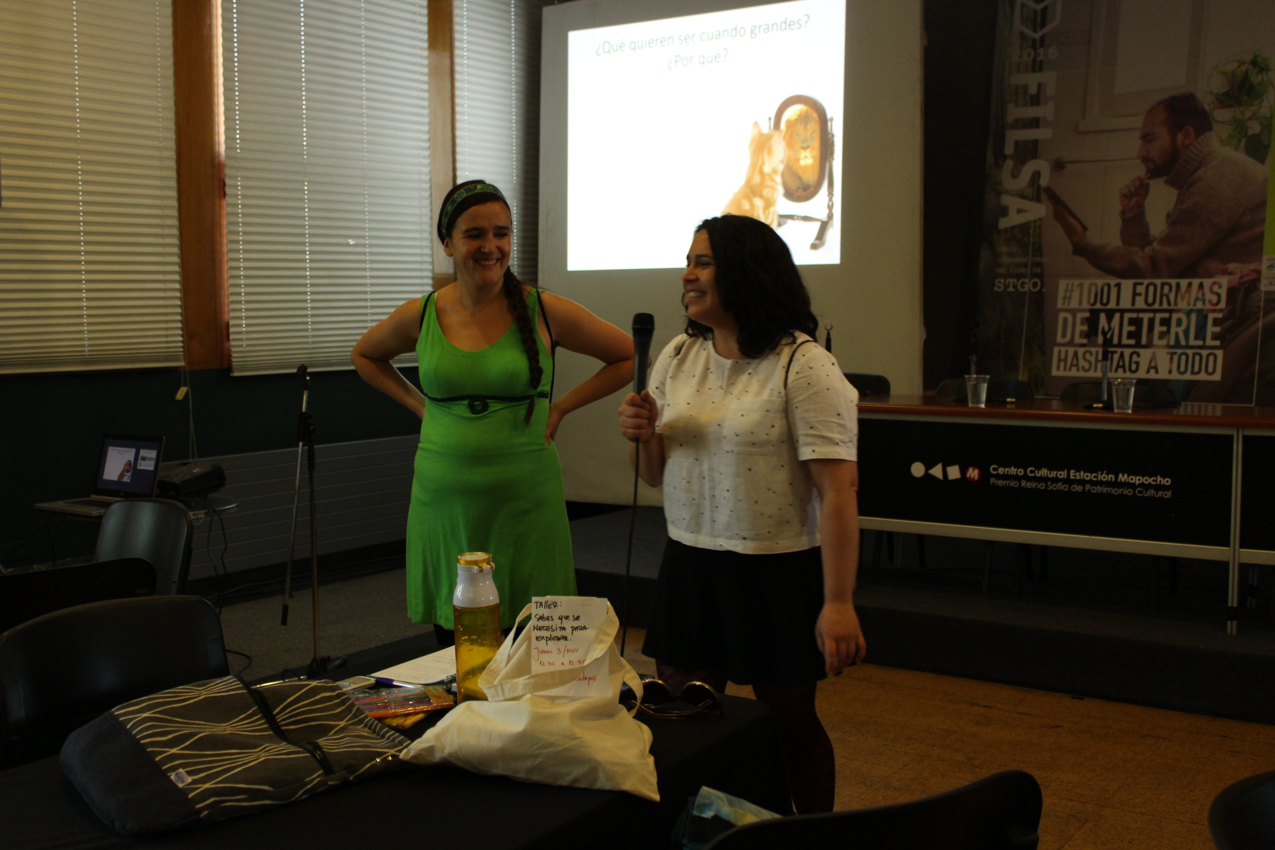 Sofía Otero, Directora del Proyecto, y Nélida Pohl, asesora científica de la iniciativa, invitaron a los y las estudiantes presentes a dibujar una persona que hace ciencia, invitándolos a identificar estereotipos en el ámbito del conocimiento para responder la pregunta de si la ciencia es cosa de hombres o de mujeres.