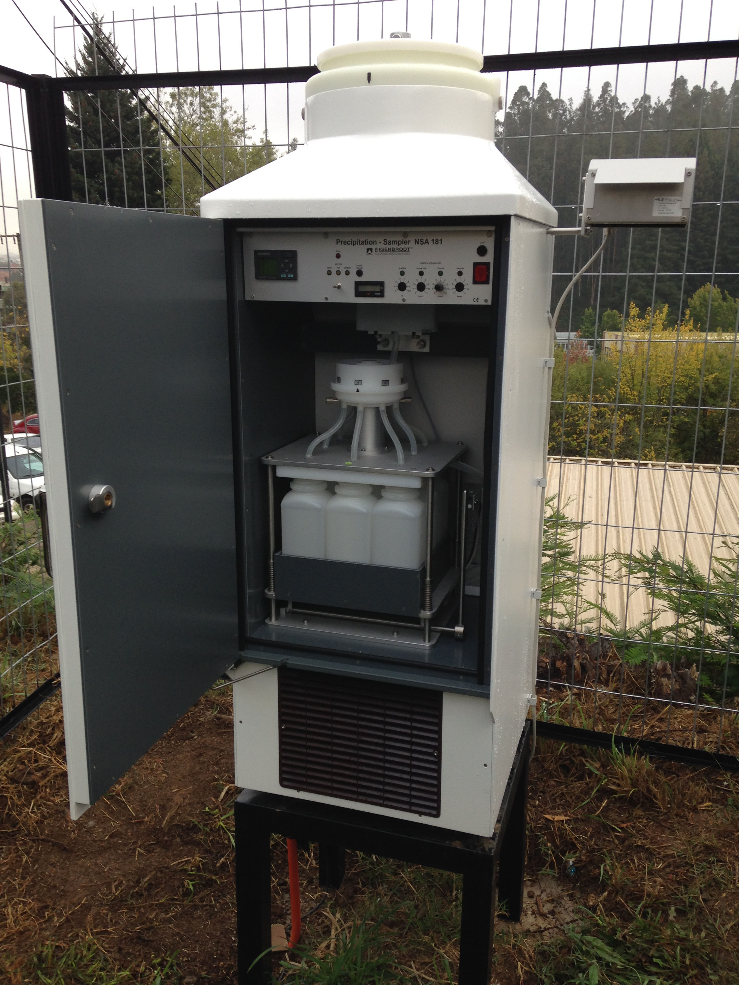 (09 de abril de 2015) Con la llegada de las primeras lluvias y luego de un verano extremadamente seco y cálido (hecho sin precedentes en las últimas décadas), el Centro de Ciencia del Clima y la Resiliencia (CR)2 instaló un colector de aguas lluvias de última generación que permitirá el estudio de la composición química de las precipitaciones. El instrumento, (NSA 181/KHS) fabricado por Eigenbrodt Environmental Measurements Systems, podrá identificar fuentes de contaminación y conocer los procesos de transformación física y química del agua en el ciclo hidrológico, así como los mecanismos de transporte y advección, sedimentación, masas de aires y de contaminantes, entre otros.