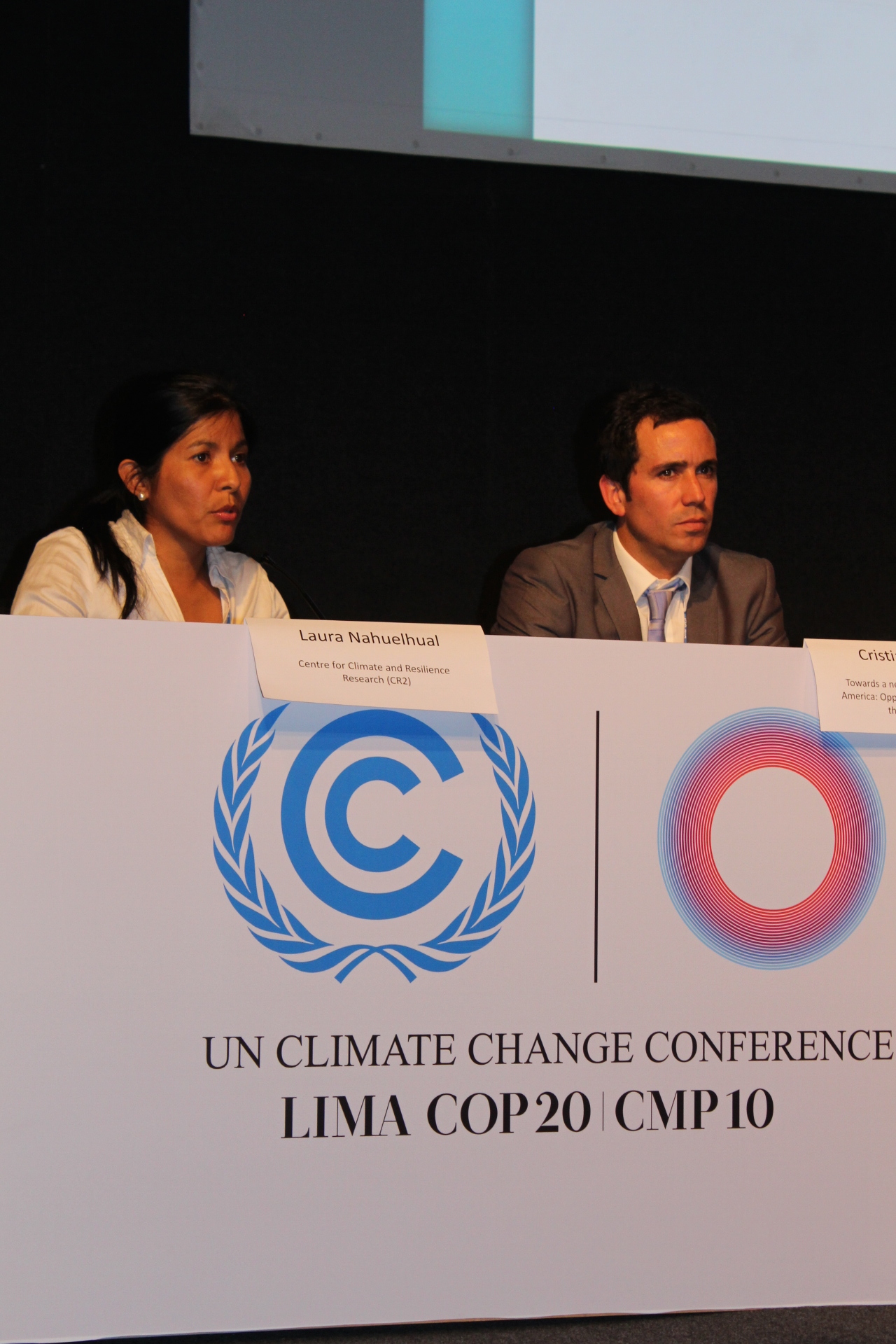 Laura Nahuehual, investigadora del (CR)2 presentó en el Side Event de la COP20 (Conferencia de la Partes de Cambio Climático) co-organizado por el Gobierno de Chile y CAN-LA (Climate Action Network Latinoamerica)
