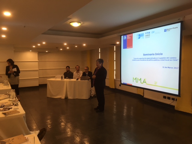 “Curso de Capacitación Especializado en la Gestión del Cambio Climático para Hacedores de Política Pública a Nivel Municipal En Chile”. Este es el nombre del proyecto y también del curso que comenzó este 31 de marzo y que se extenderá hasta agosto del 2017, desarrollado por el Departamento de Cambio Climático —con el apoyo de los Departamentos de Educación Ambiental y Gestión Ambiental Local del Ministerio del Medio Ambiente— y financiado por el Fondo Newton- Picarte.