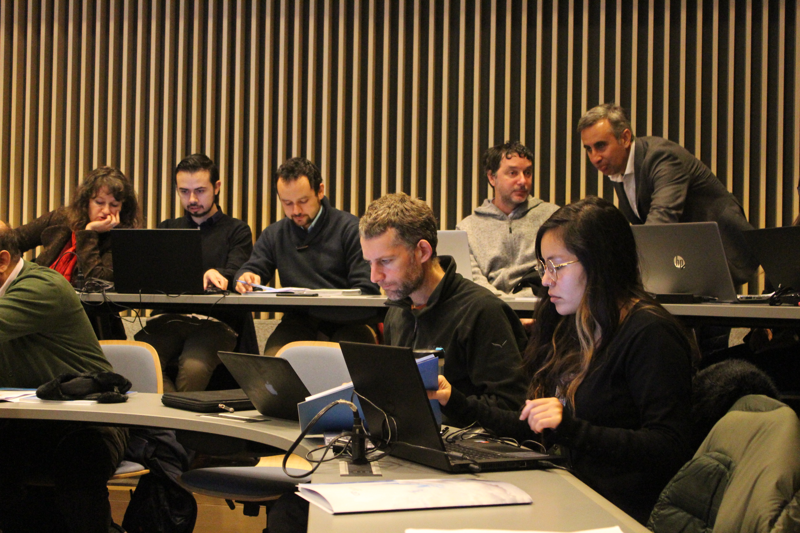 Guiando los ejercicios prácticos estuvo Francisca Muñoz, Encargada de datos y cómputos del (CR)2. Juan Pablo Boisier y Deniz Bozkurt, investigadores (CR)2, Nancy Valdevenito, Ingeniera de datos y GIS del (CR)2, y estudiantes del Centro apoyaron a los participantes durante el reconocimiento de los componentes de la Plataforma de Simulaciones Climáticas así como en la resolución de los ejercicios.