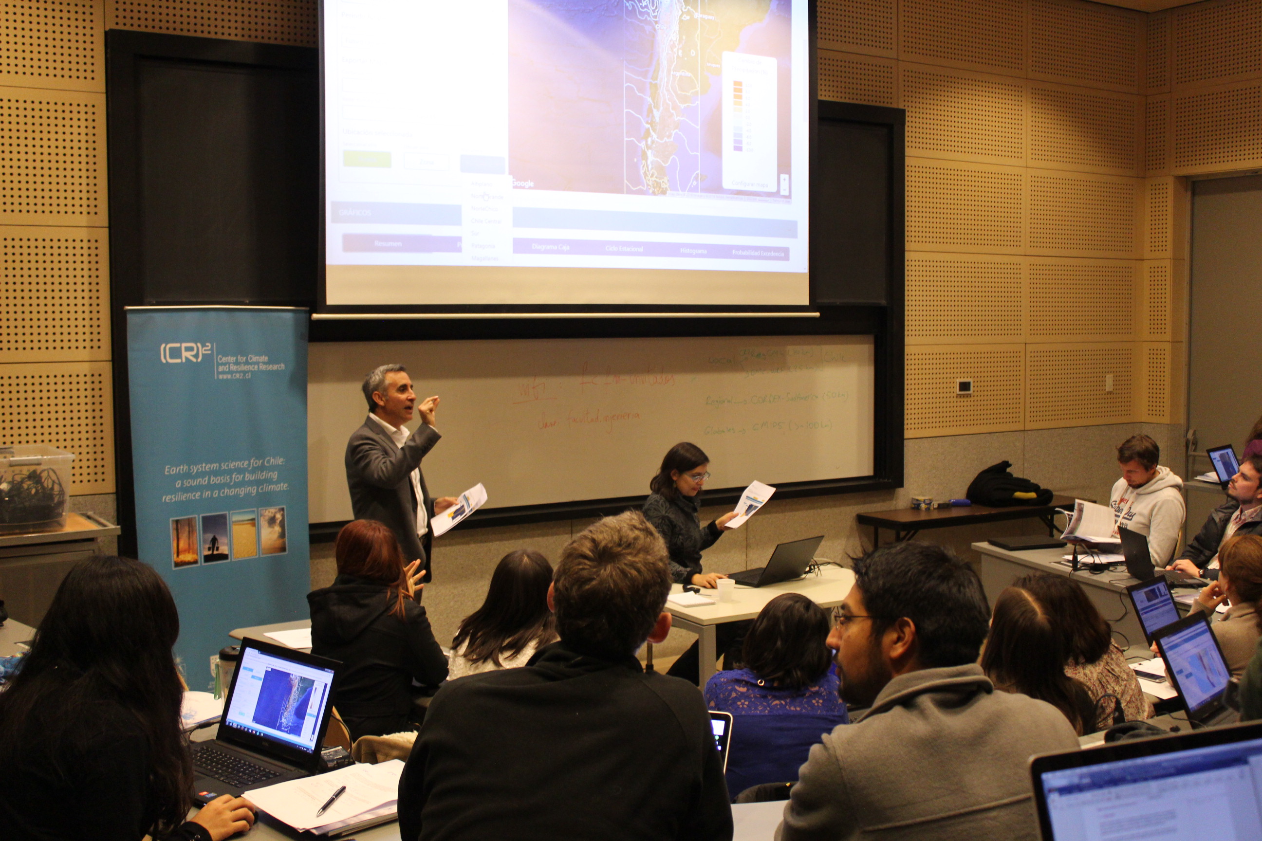 Promoviendo la interfaz entre la ciencia y tomadores de decisión, el pasado martes 10 de julio el Centro de Ciencia del Clima y la Resiliencia (CR)2 realizó la capacitación “Simulaciones Climáticas Regionales y Plataformas de Visualización”, en la Facultad de Ciencias Físicas y Matemáticas de la U. de Chile.