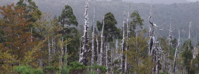 4. Ha sido comprobado científicamente que el cambio climático es también una amenaza para los bosques de alerce, pues esta especie tiene un bajo desempeño cuando las condiciones son secas y calurosas. Estudios científicos también señalan que las condiciones ambientales están siendo y serán más propicias para incendios más recurrentes y de mayor intensidad en la zona sur del país. Dado que el alerce se encuentra en Peligro de Extinción y ahora aún más amenazado por el cambio climático, resulta imperante considerar este factor y extremar su protección, evitando adicionar cualquier otra amenaza a su Es el deber del Estado de Chile protegerlo.
