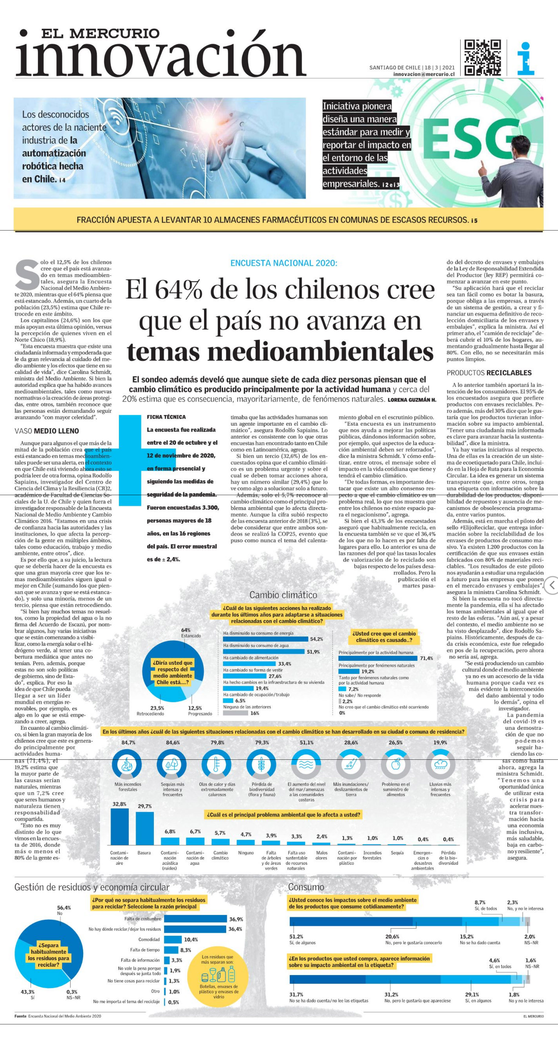 Solo el 12,5% de los chilenos cree que el país está avanzando en temas medioambientales, asegura la Encuesta Nacional del Medio Ambiente 2020, mientras que el 64% piensa que está estancado. Además, un cuarto de la población (23,5%) estima que Chile retrocede en este ámbito.