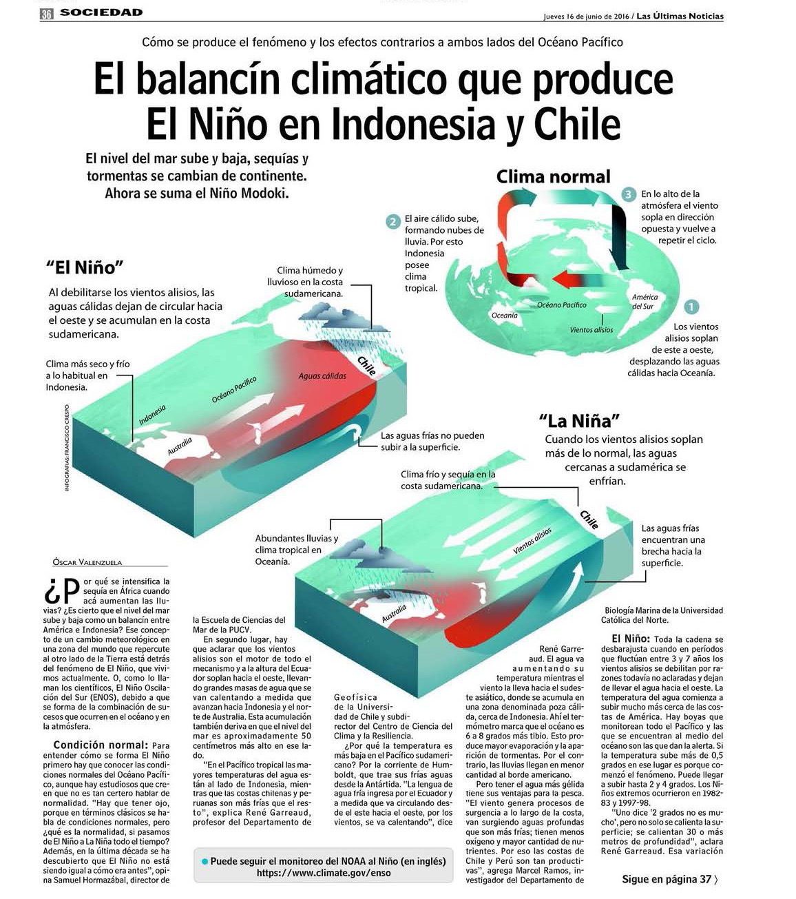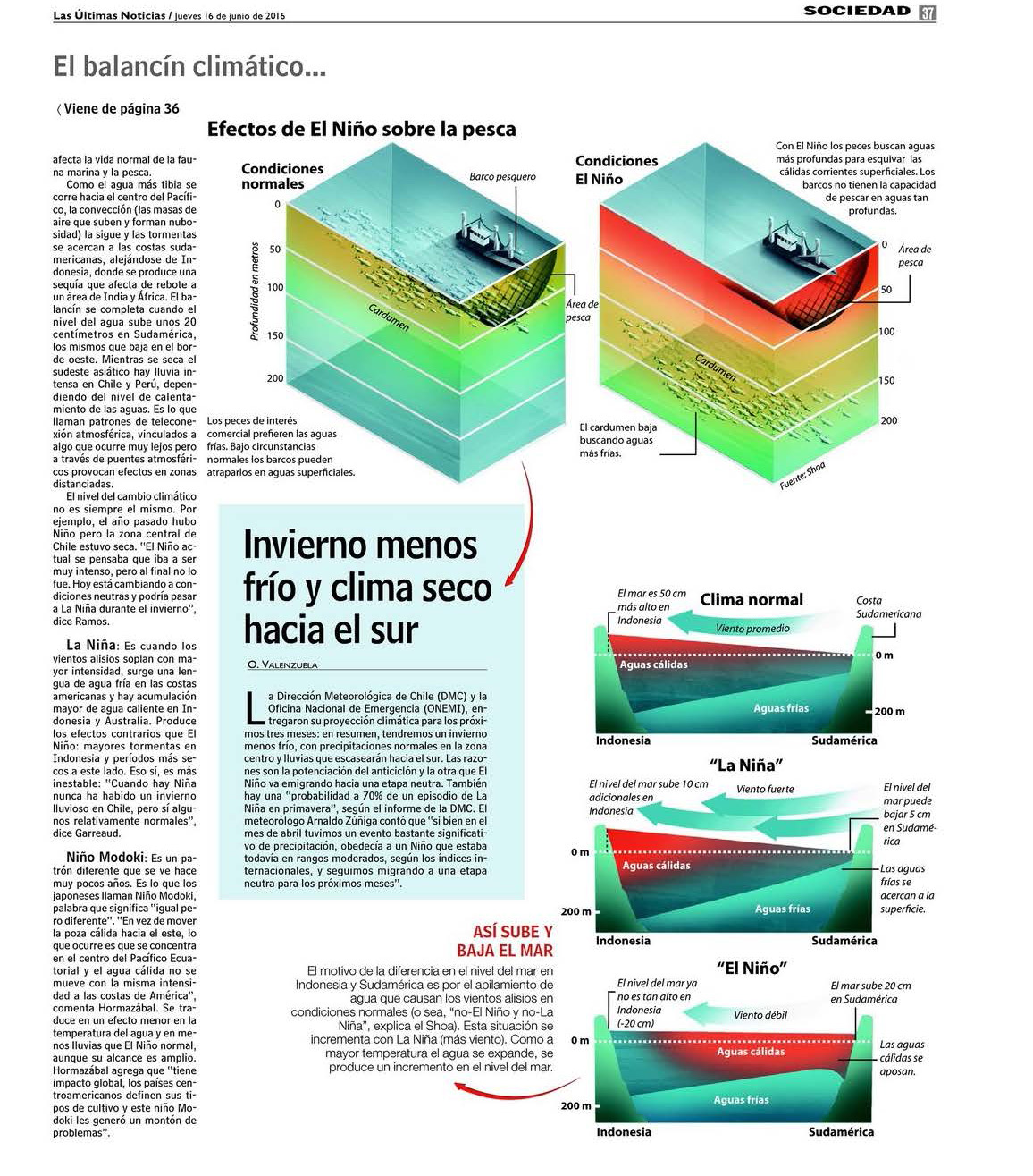 El balancín climático que produce El Niño en Indonesia y Chile (Las Últimas Noticias)