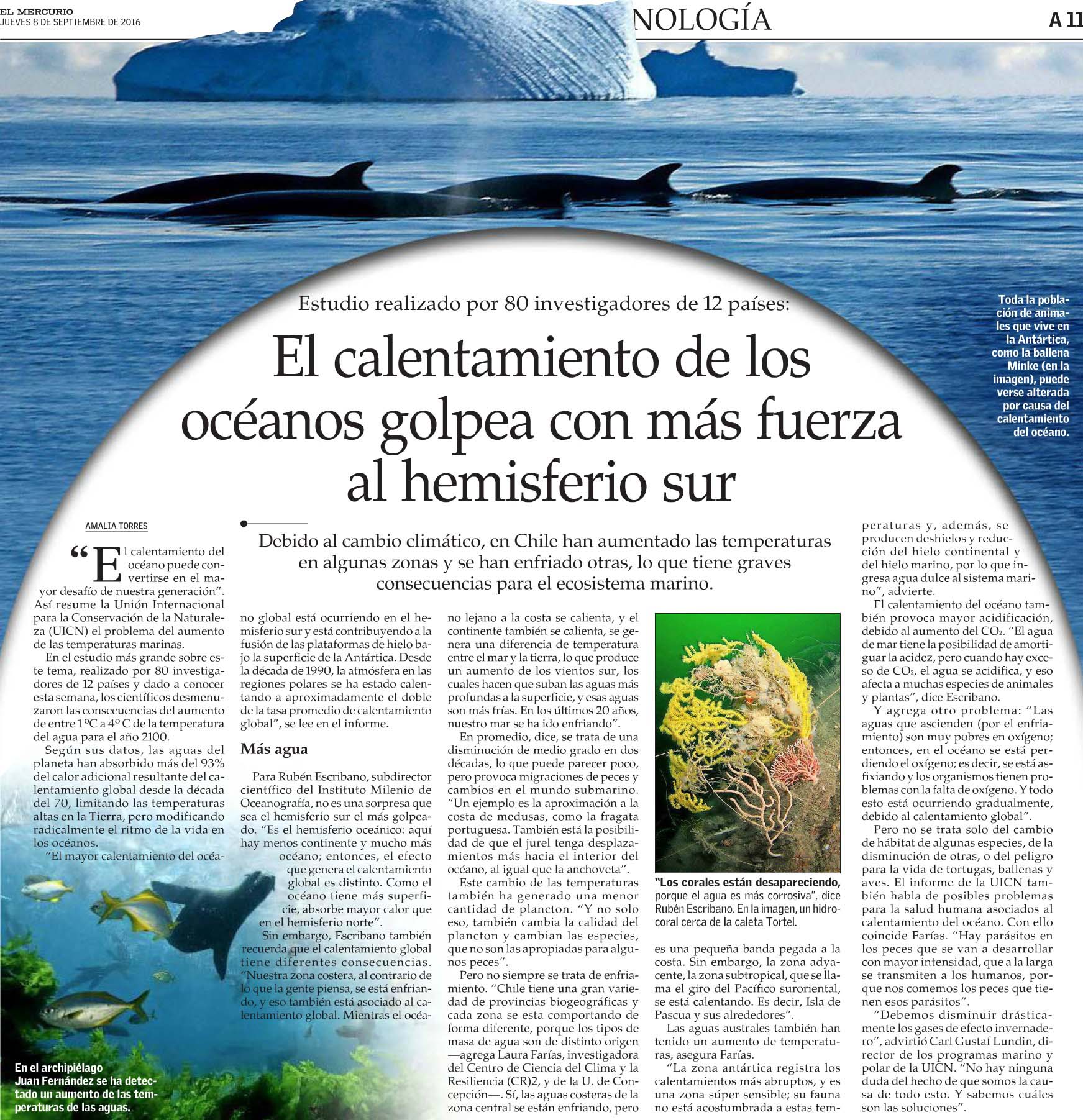 El calentamiento de los océanos golpea con más fuerza al hemisferio sur (El Mercurio)