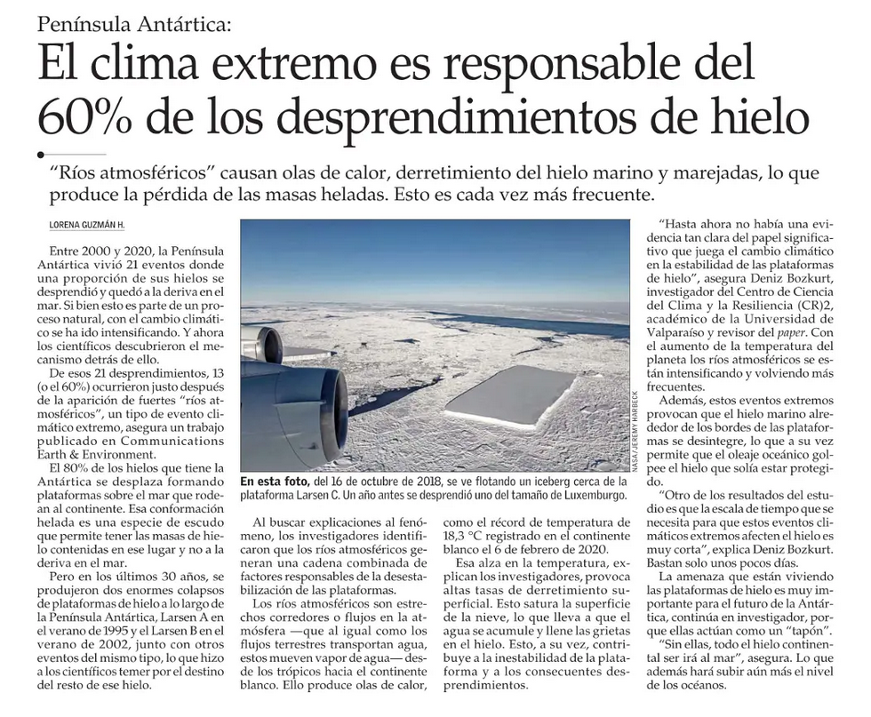 «Ríos atmosféricos» causan olas de calor, derretimiento del hielo marino y marejadas, lo que produce la pérdida de las masas heladas. Esto es cada vez más frecuente.