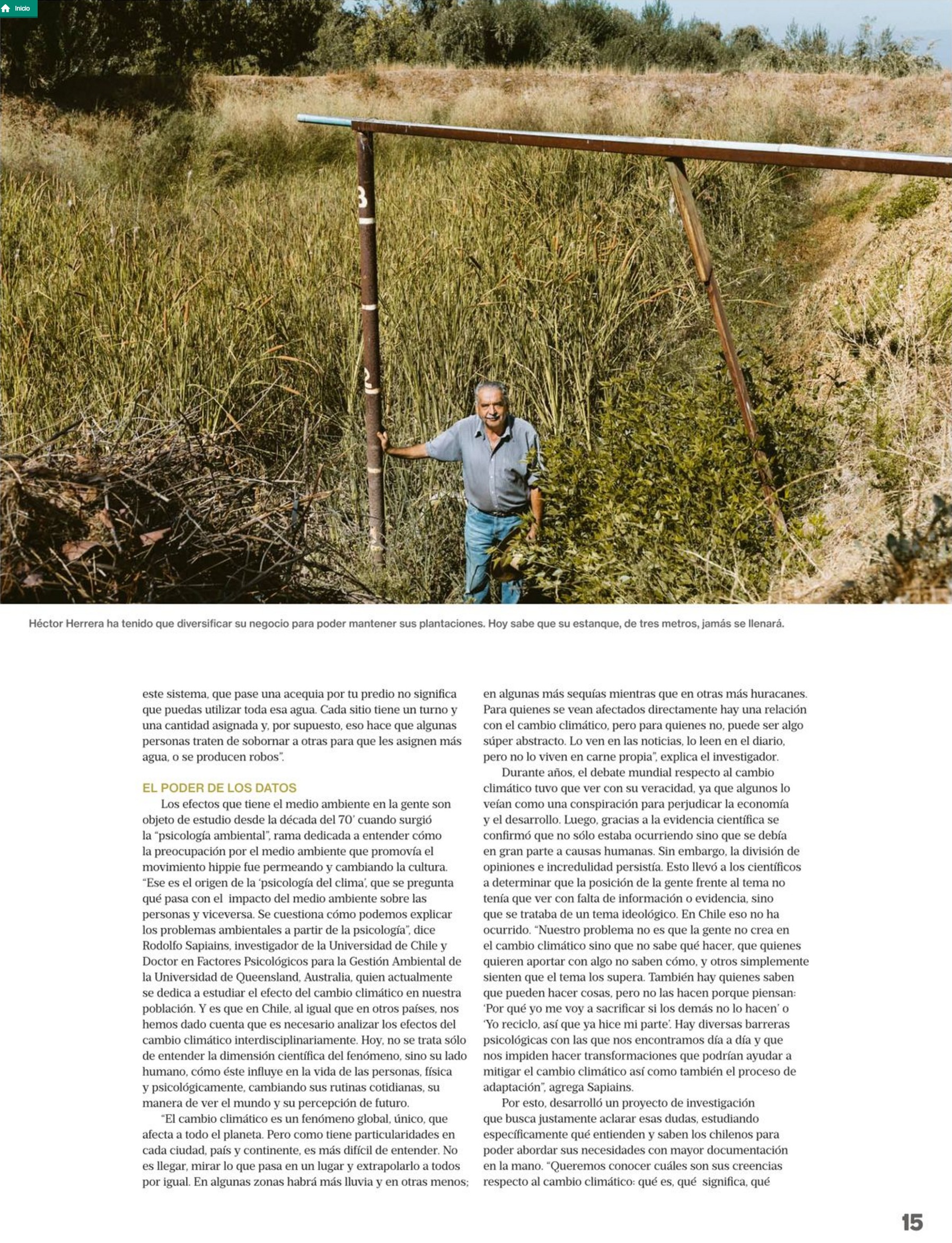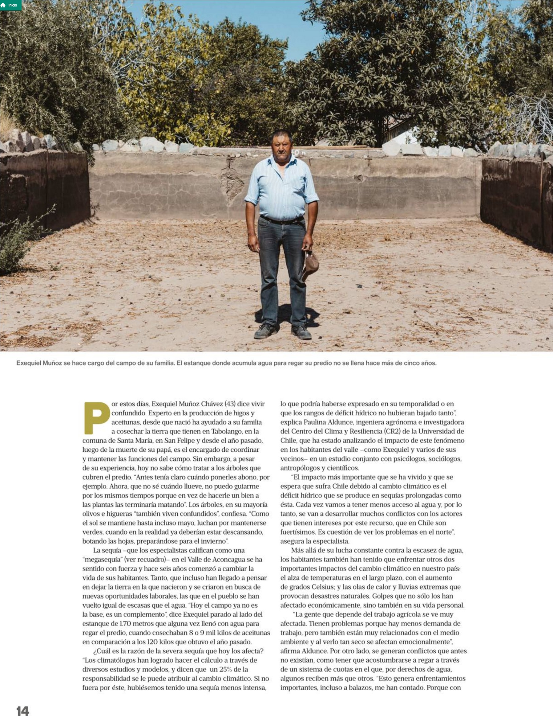 La zona central de Chile vive una megasequía, la más extensa y duradera de nuestra historia, y parte importante de la culpa la tiene el cambio climático. En el Valle de Aconcagua, una de las zonas más afectadas, sus agricultores ya se definen como resilientes, el concepto que la psicología del clima ha acuñado para definir a quienes deben adaptar sus vidas a esta nueva y seca realidad.