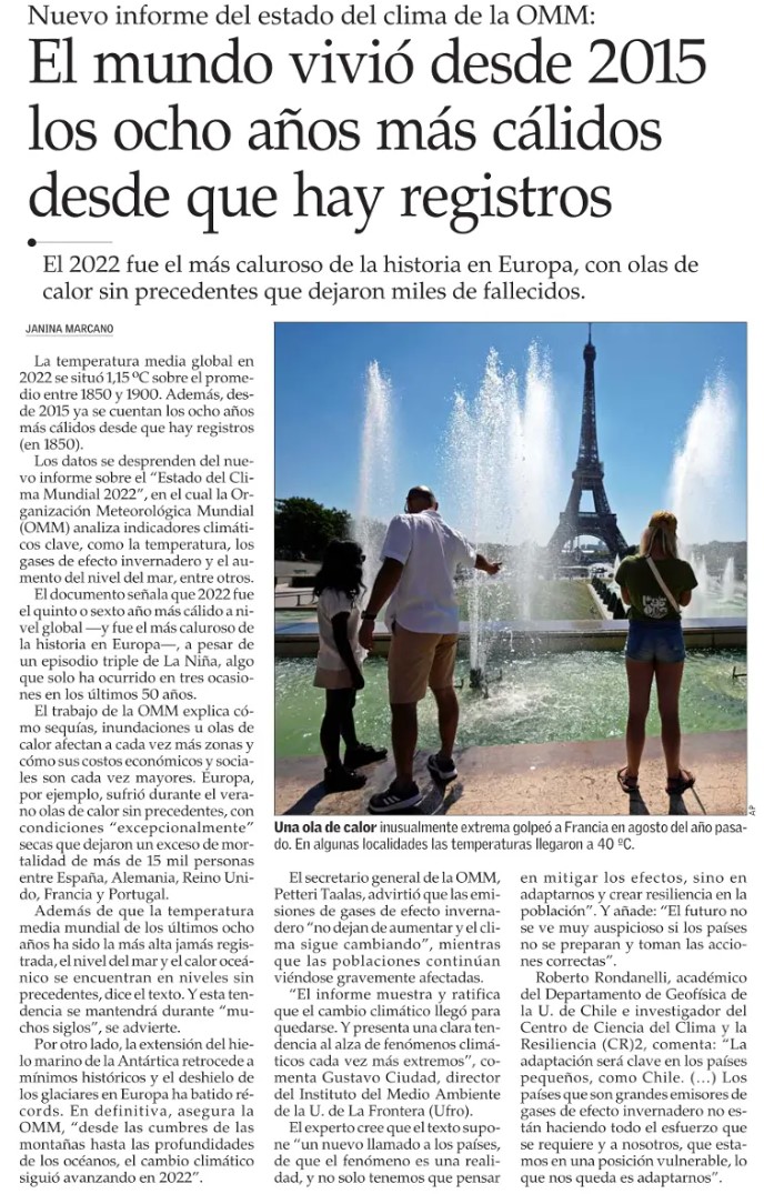 Agua y ExtremosCiudades resilientes El mundo vivió desde 2015 los ocho años más cálidos desde que hay registros (El Mercurio) 24 de abril de 2023 940 El 2022 fue el más caluroso de la historia en Europa, con olas de calor sin precedentes que dejaron miles de fallecidos. Leer en El Mercurio.