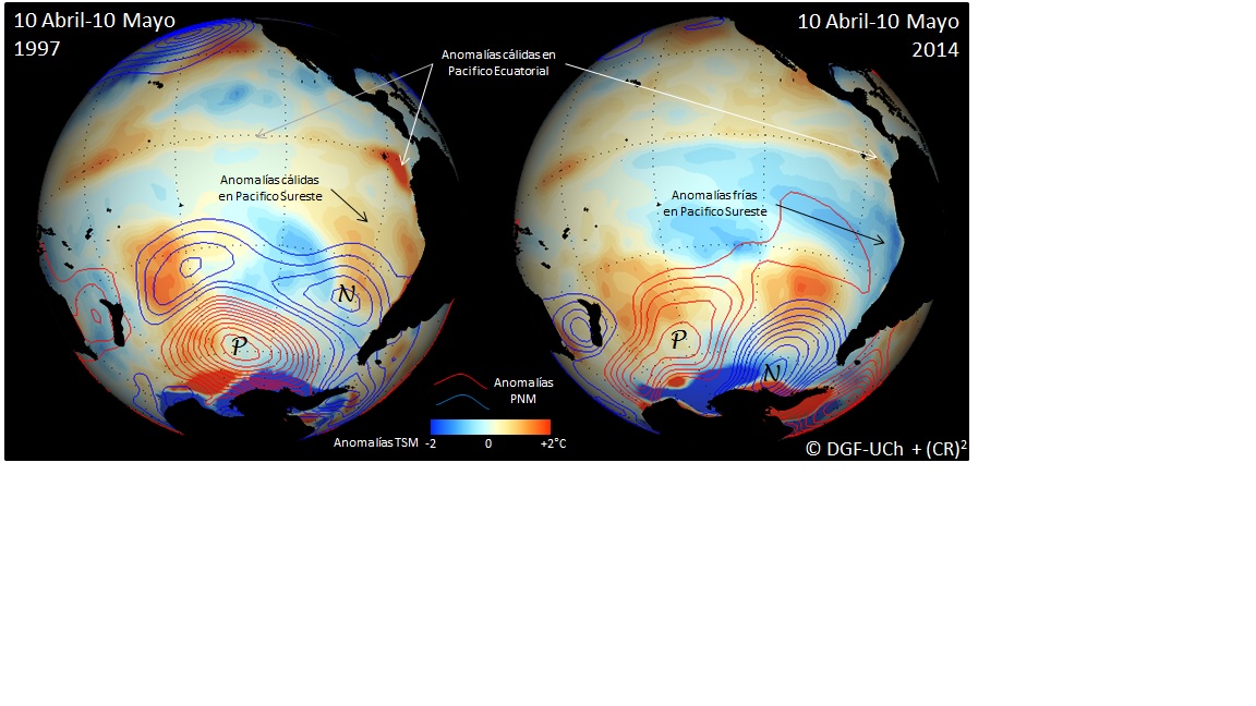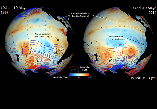 (16 de mayo de 2014) La evolución durante los últimos meses del sistema acoplado océano-atmósfera en el Pacifico ecuatorial presenta similitudes importantes con las que se registraron en el otoño austral de 1997, en la etapa de formación de «El Niño del Siglo». El evento de 1997 estuvo acompañado por alteraciones climáticas sustanciales en diversas partes del planeta, incluyendo precipitaciones invernales de 3 a 4 veces por sobre el promedio de largo plazo en Chile central. Lo anterior ha incrementado el interés de la comunidad científica, centros operacionales y los medios de prensa en la evolución del actual evento de El Niño y sus posibles impactos.