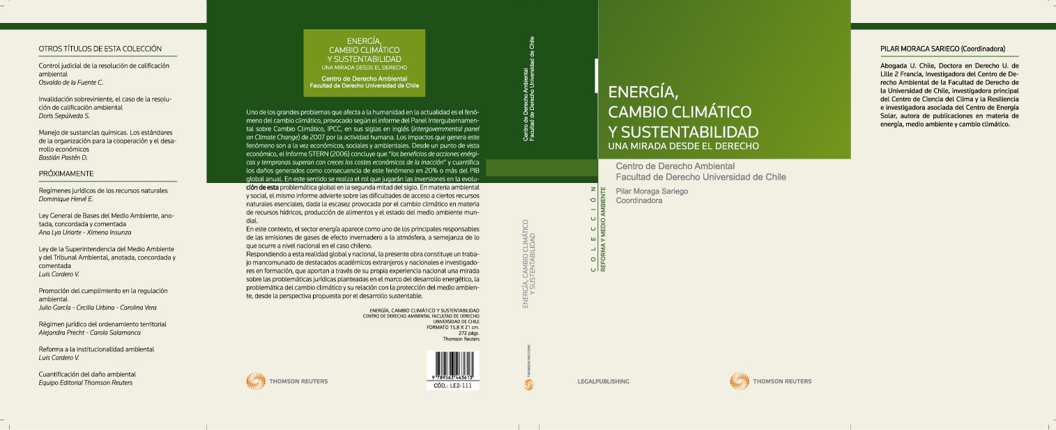 Ya se encuentra disponible en librerías, la publicación coordinada por nuestra Investigadora Principal, Pilar Moraga. El texto es de la colección del Centro de Derecho Ambiental de la Facultad de Derecho de la Universidad de Chile, y presenta el trabajo de distintos académicos e investigadores nacionales y extranjeros, en el cuál se aborda desde el ámbito jurídico, problemáticas como el desarrollo energético, cambio climático y la relación con la protección del medio ambiente, entre otros aspectos.