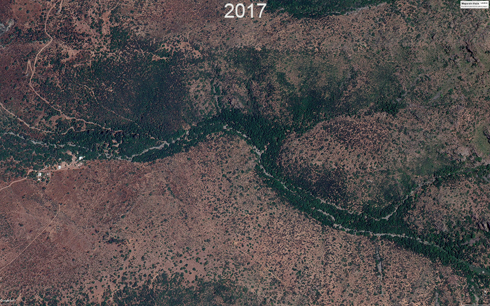 Images obtained from Google Earth, where one can observe the change in tones from 2017 to 2020.
