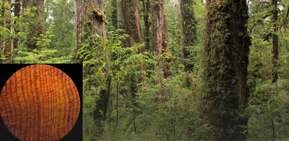 In fact, it was tree rings that were used to determine temperature changes over the past 5,682 years in southern South America, making this the most extensive climate record for the Southern Hemisphere, providing information with annual resolution, and extending previous records by more than 2,060 years.  The researchers who participated in this  study published in the journal Quaternary Science Reviews worked with the rings of the Alerce tree (Fitzroya cupressoides), the second longest-lived species on the planet, which can live up to 3,620 years. Alerce grows exclusively in remote parts of Chile’s Los Lagos and Los Ríos regions and in Argentina near the Chilean border. This temperature reconstruction was achieved by dating and measuring the rings on 480 samples taken from both living and fallen trees – to a precision of 0.001 mm – establishing the relationship between ring width and temperature by using regional weather station records dating back to 1959.