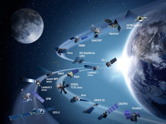 Figure 1. NASA-controlled polar-orbiting Earth observation fleet as of 2015. Photo source: NASA (https://climate.nasa.gov/news/2242/briefing-to-highlight-results- from-new-earth-missions/).