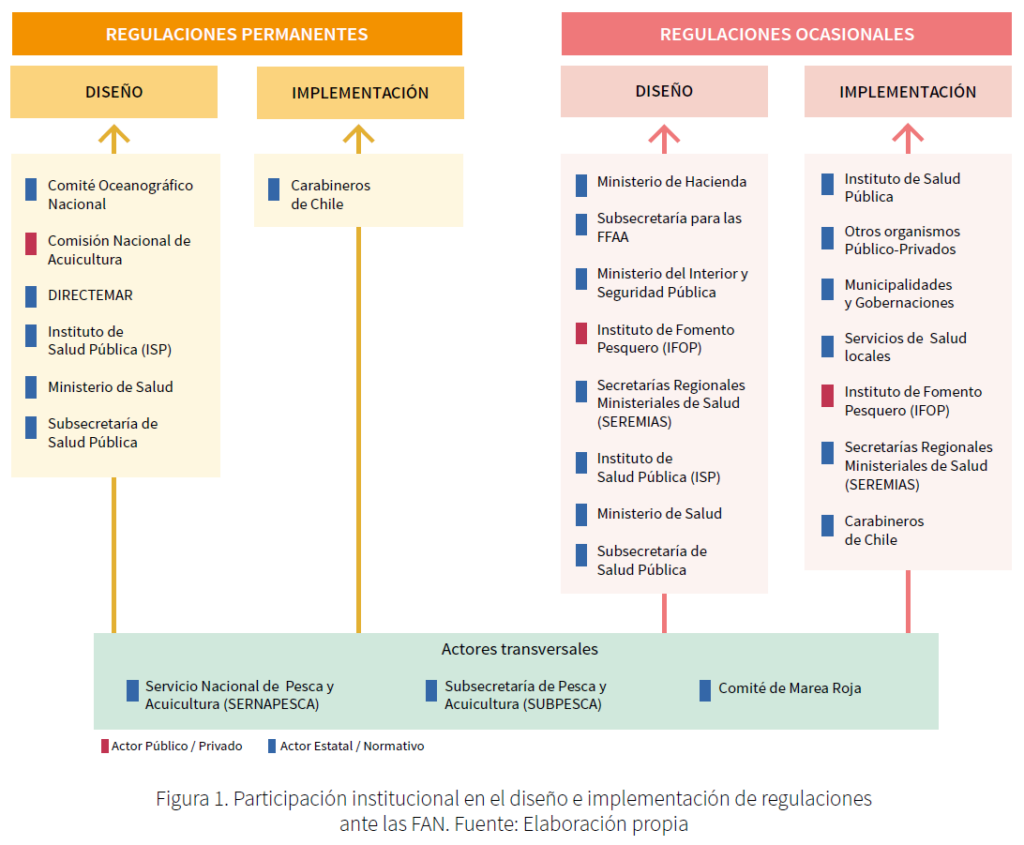 Las FAN se manifiestan de manera abundante y continua, particularmente en el sur de Chile. Por ello, existe por parte de las autoridades sanitarias y de pesca y acuicultura una permanente vigilancia y protocolos de respuesta para proteger la salud de las personas y evitar intoxicaciones o muertes asociadas a la contaminación de productos del mar; esto, junto a las acciones de autocuidado de la población, ha permitido mantener los casos de morbilidad y mortalidad bastante controlados. Sin embargo, tanto las FAN como las medidas que se despliegan para enfrentarlas -como el cierre de áreas de extracción-, alteran o impiden el desarrollo normal de las actividades en el territorio, generando impactos económicos y sociales.