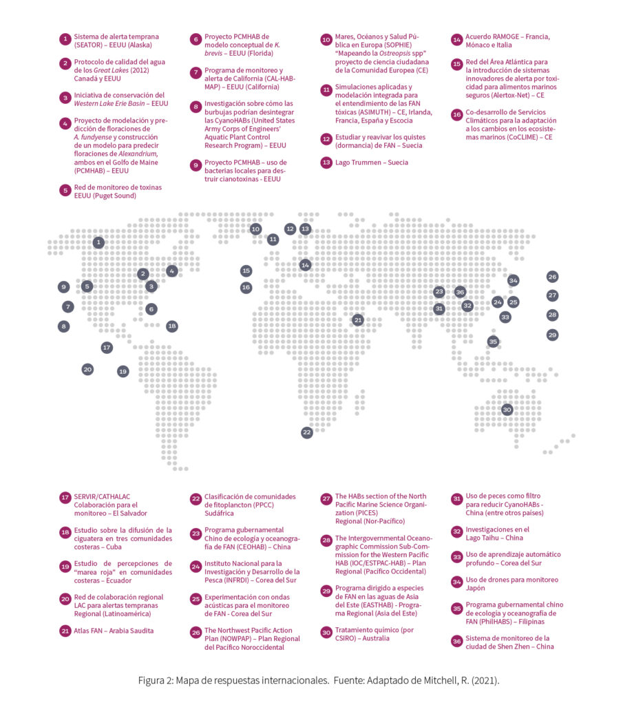 Las FAN han sido históricamente reconocidas por los impactos que tienen para la salud humana, principalmente por las intoxicaciones que se producen por el consumo de mariscos contaminados durante estos eventos (ver BOX 1).