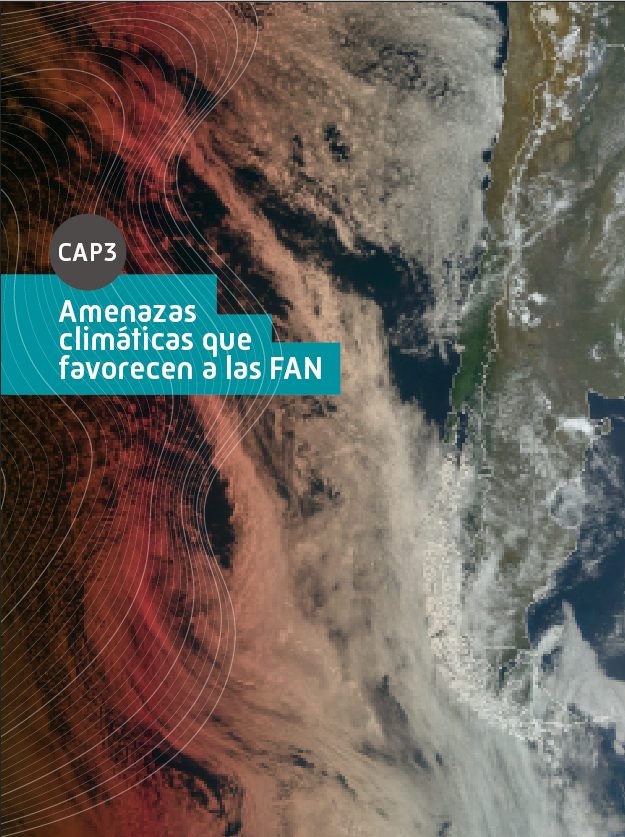 En síntesis, existen distintos mecanismos atmosféricos y oceanográficos que determinan una combinación óptima para favorecer la presencia y abundancia de fitoplancton y, eventualmente, la potencial ocurrencia de FAN. Por esta razón, para levantar evidencia sobre amenazas climáticas que actualmente afectan y afectarán al crecimiento del fitoplancton que produce FAN se deben analizar las distintas variables locales y remotas mencionadas, así como la combinación de estas, especialmente en un contexto de cambio climático.