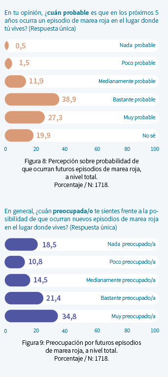 Así, los impactos se extienden más allá del riesgo de intoxicaciones, pudiendo aparecer también afectaciones en la salud mental asociadas a la inseguridad o temor frente a la ingesta de alimentos contaminados, o al desgaste psicosocial y la incertidumbre que implica el cambio de prácticas y costumbres durante un episodio de FAN cuya extensión no es posible de predecir: