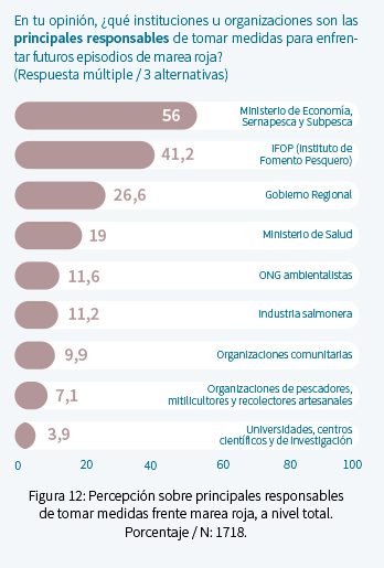 Además, la mortandad y descarga al mar de salmones en descomposición por parte de la industria salmonera y otros conflictos latentes con industrias locales alimentaron las sospechas sobre la naturaleza y las causas del evento de FAN. Proliferaron creencias en contra de la pesca artesanal y se generó un clima de desconfianza hacia el sector privado y las instituciones públicas.