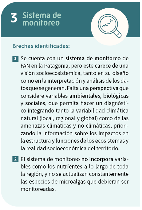 Cabe señalar que fenómenos climáticos de escala global como El Niño Oscilación del Sur (ENOS) y el Modo Anular del Sur (SAM), que producen variaciones climáticas, incluyendo sequías en los meses de verano y otoño en la zona norte de Patagonia, han sido relacionados con la ocurrencia de FAN, como el evento ocurrido en la ecorregión de Chiloé-Taitao el año 2016. Este evento, dio lugar a una de las mayores crisis socioambientales de la historia en el territorio, con graves consecuencias a nivel ecológico (mortandad masiva de aves, peces y cetáceos) y socioeconómico (pérdida de fuentes de trabajo, disminución de ingresos, protestas ciudadanas) (León-Muñoz et al., 2018; Mardones et al., 2021).