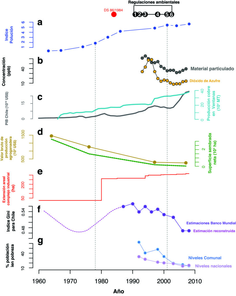 In this context, a study published in the journal Earth’s Future sought to reconstruct the socio-environmental history of Puchuncaví, a renowned sacrifice zone located in the Valparaíso Region, Chile, integrating its historical pollution indices with macroeconomic trends, its indices of social inequality, and environmental regulations, from the end of the 19th century to the present.