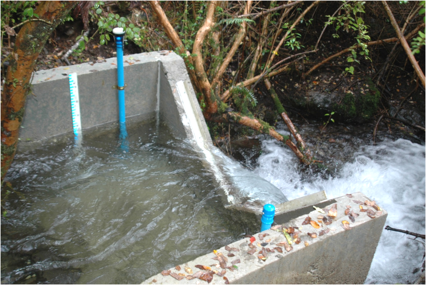 One of the 90° V-notch weirs used to measure and record streamflow in RCV
