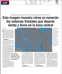 Zona costera Esta Imagen muestra cómo se moverán los sistemas frontales que dejarán viento y lluvia en la zona central (LUN.com) 10 de junio de 2025 818 Leer en Lun.com