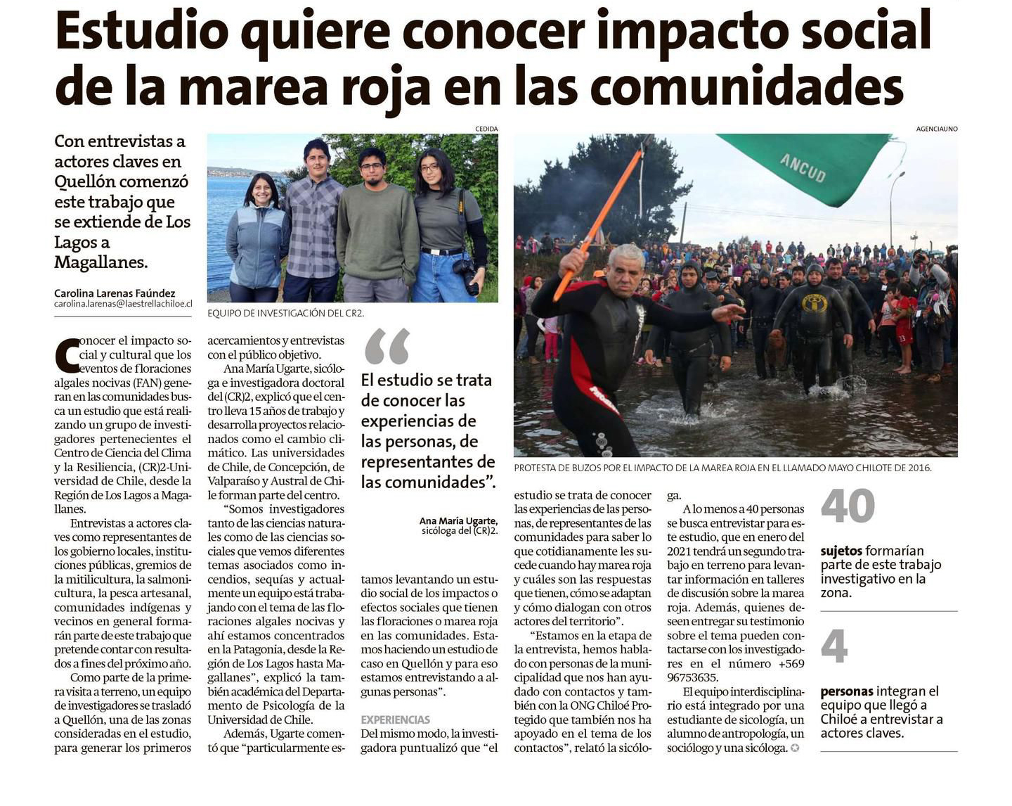 Conocer el impacto social y cultural que los eventos de floraciones algales nocivas (FAN) generan en las comunidades busca un estudio que está realizando un grupo de investigadores pertenecientes al Centro de Ciencia del Clima y la Resiliencia (CR)2, desde la Región de Los Lagos a Magallanes.
