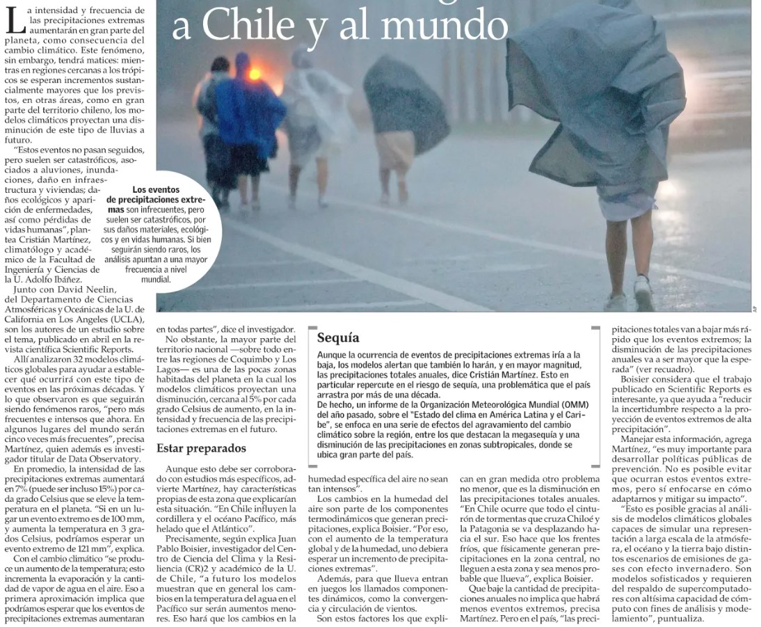 Un análisis a modelos climáticos globales, en el que participó un investigador nacional, muestra que la frecuencia e intensidad de estos fenómenos de lluvias aumentará sobre todo en los trópicos, pero en el país ocurrirá un efecto inverso.